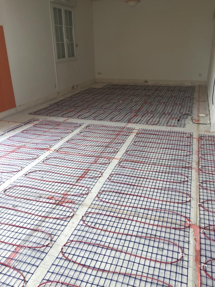 Pose d'un plancher chauffant dans le cadre d'une rénovation.