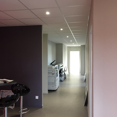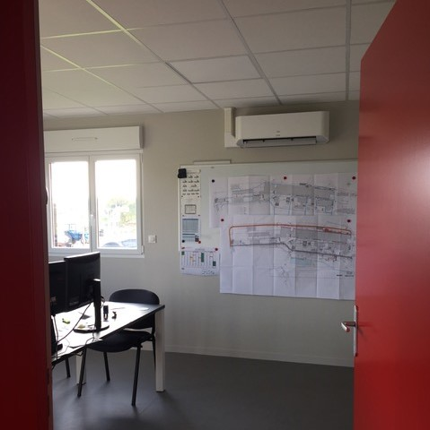 Installation électrique (éclairage ; prises ; réseau informatique ; vidéo surveillance et climatisation ) d'Eiffage Route à Saint-Jean-de-Daye